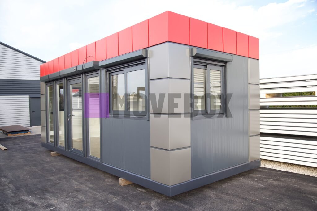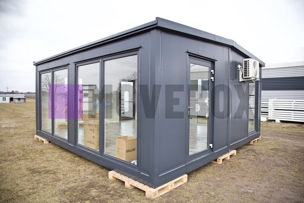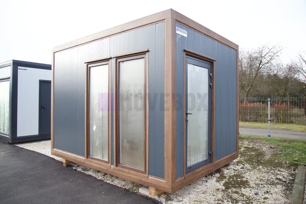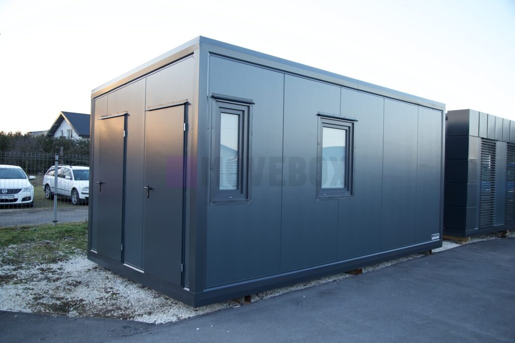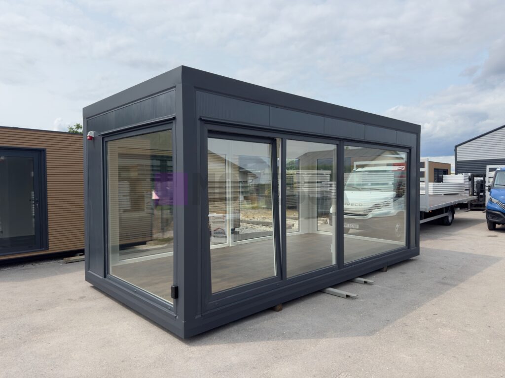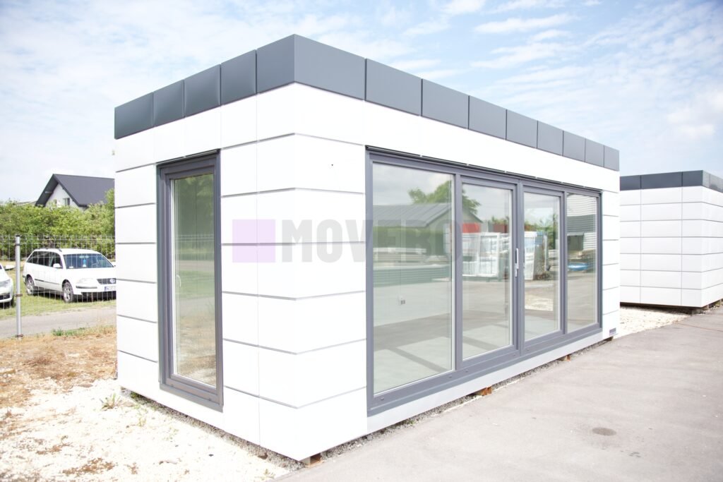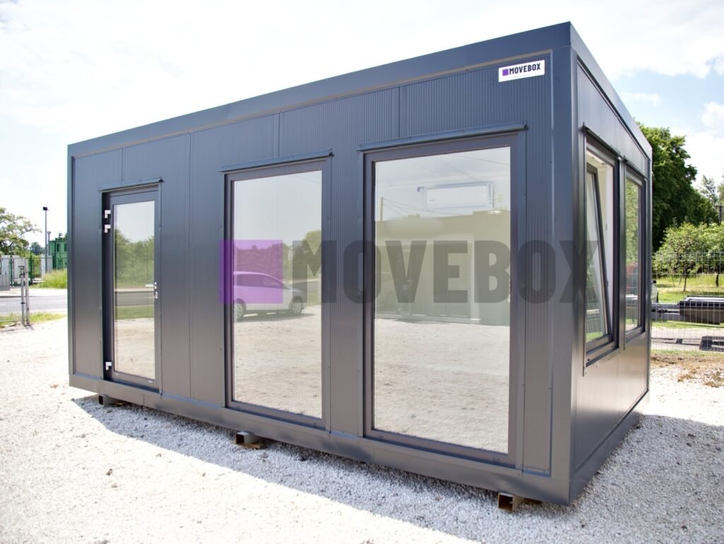 Całoroczny kontener 6,00 m × 3,00 m z oknami i drzwiami aluminiowymi. Podłoga może zostać dostosowana przez klienta.