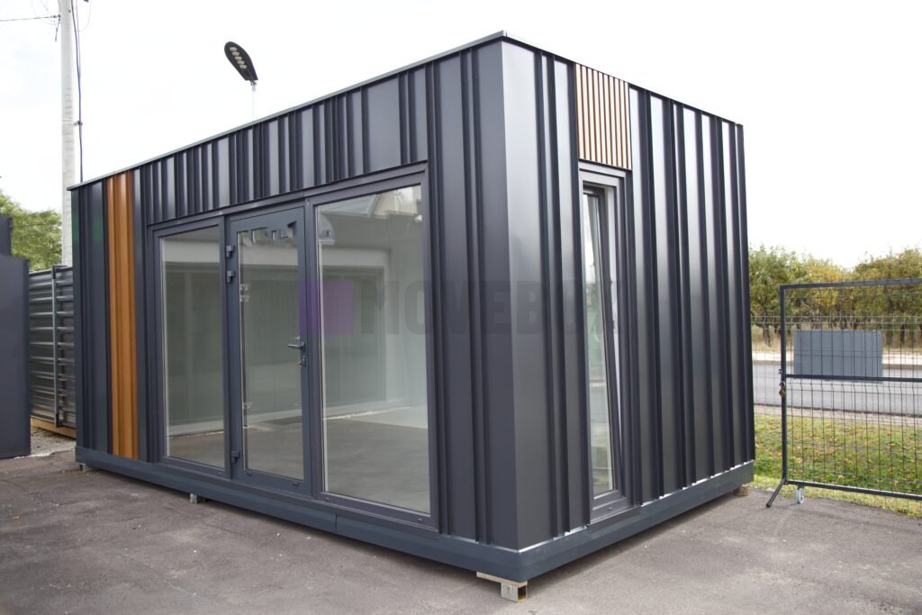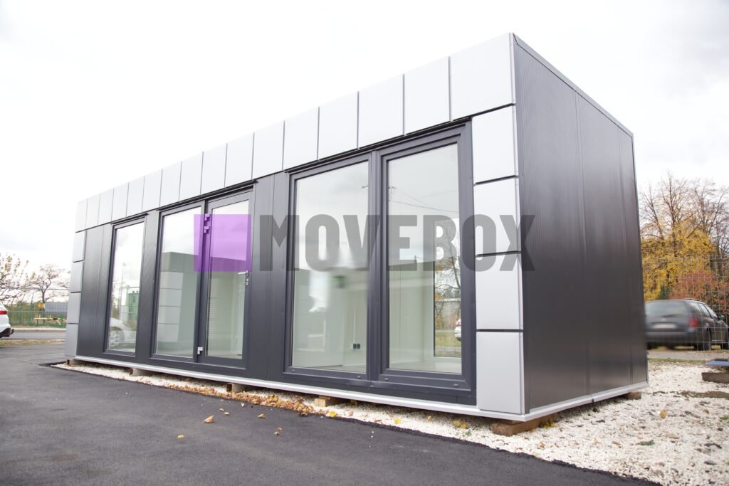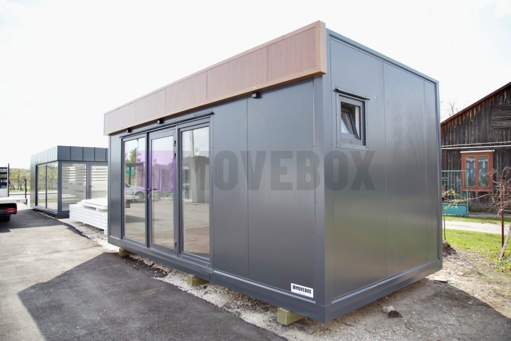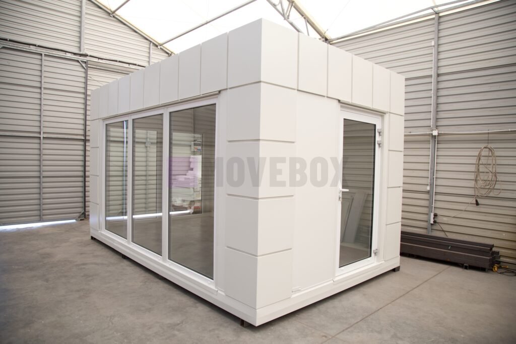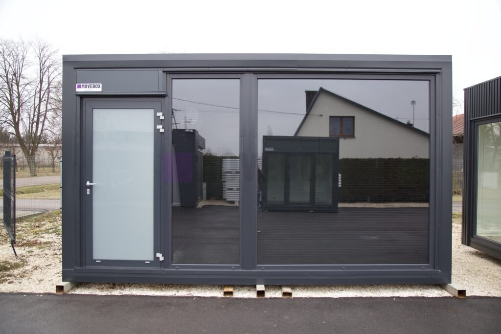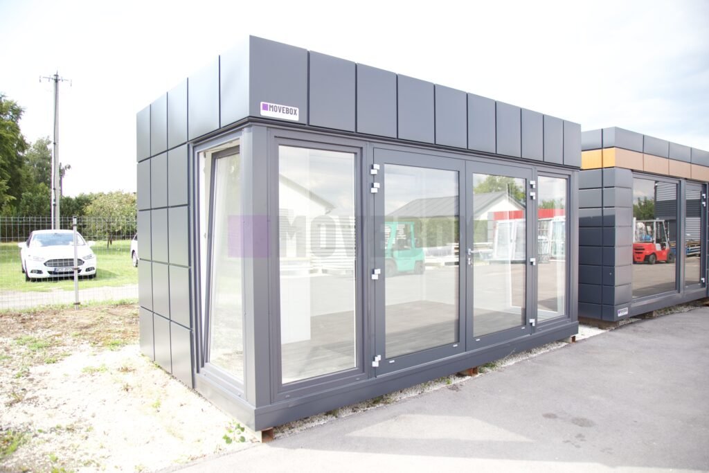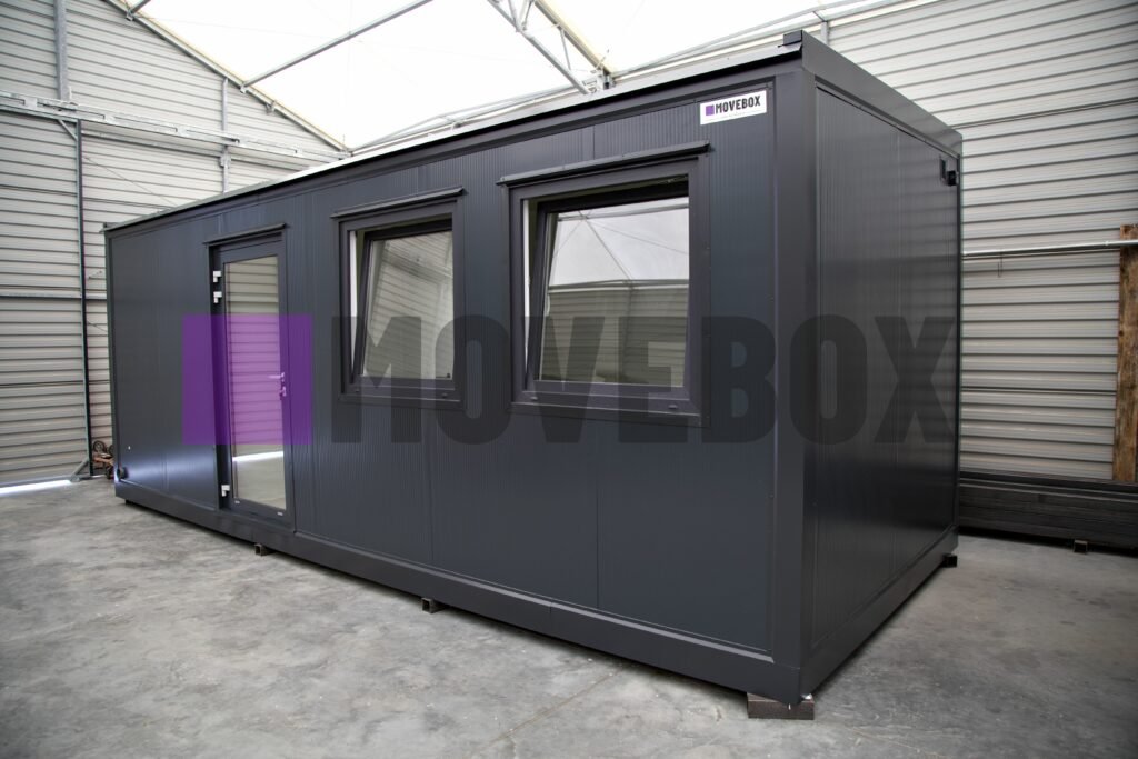 Całoroczny kontener 6,00 m × 3,00 m z oknami i drzwiami aluminiowymi. Podłoga może zostać dostosowana przez klienta.