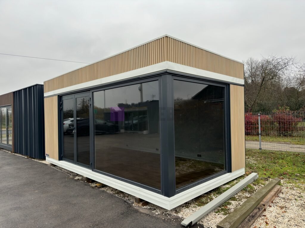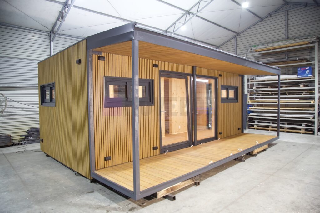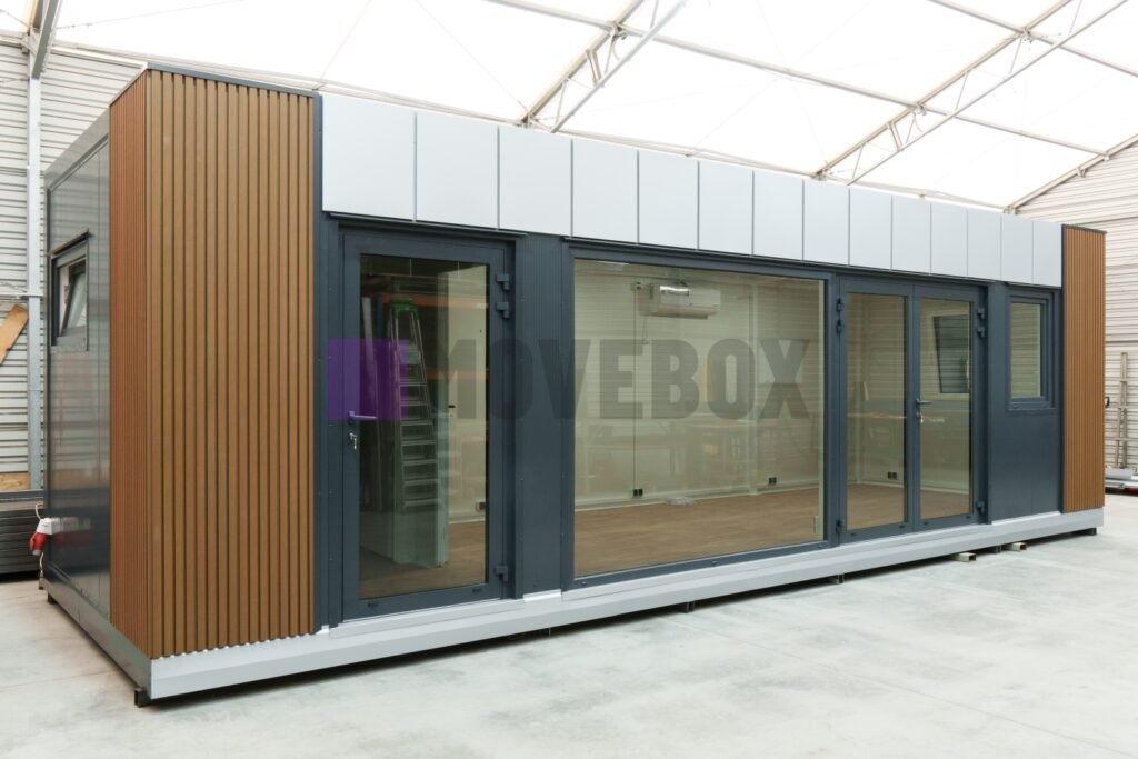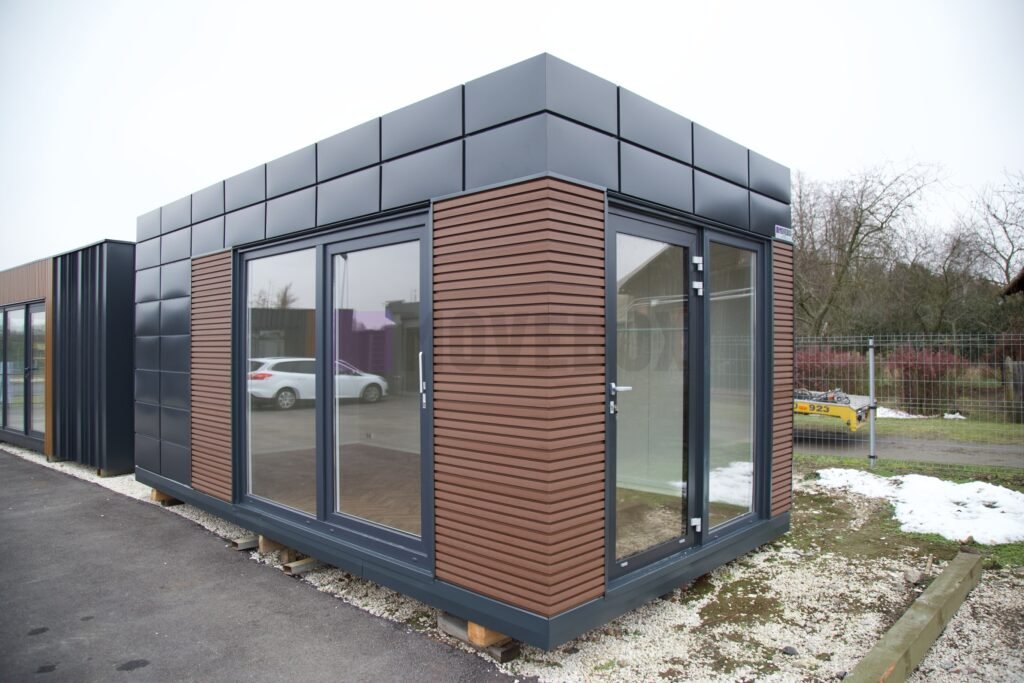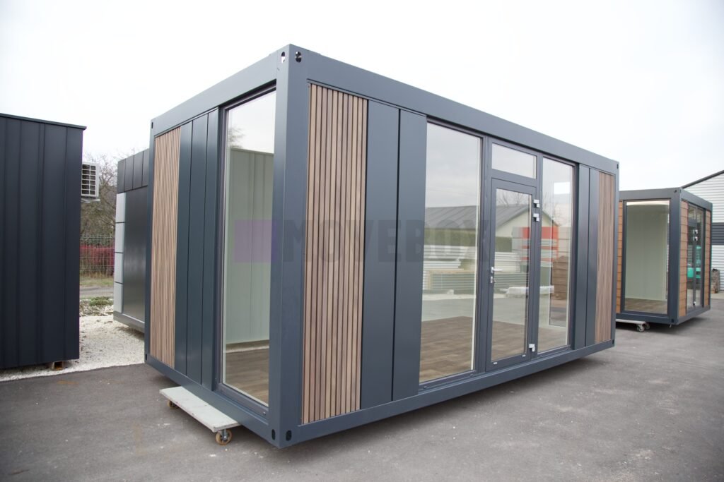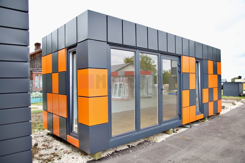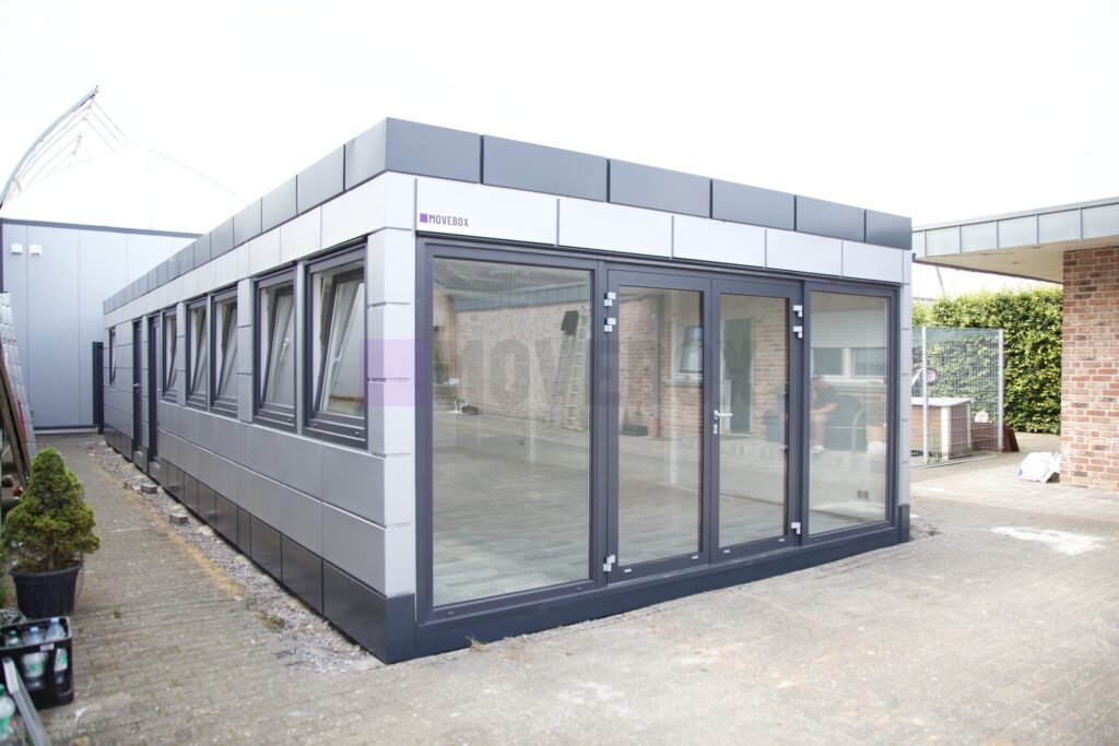 Całoroczny kontener 6,00 m × 3,00 m z oknami i drzwiami aluminiowymi. Podłoga może zostać dostosowana przez klienta.