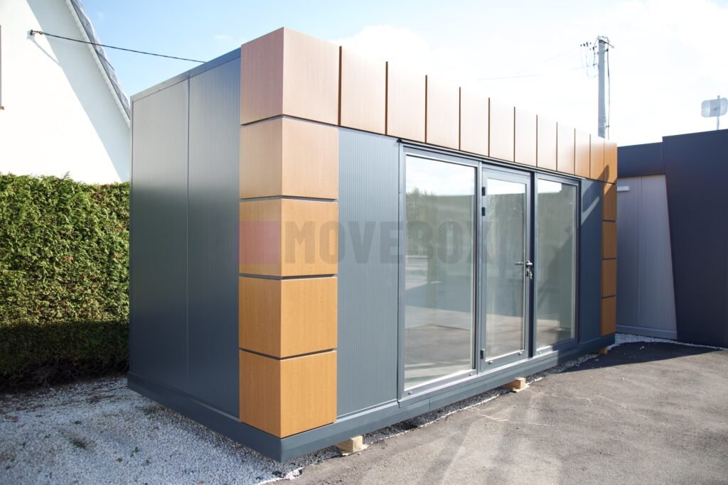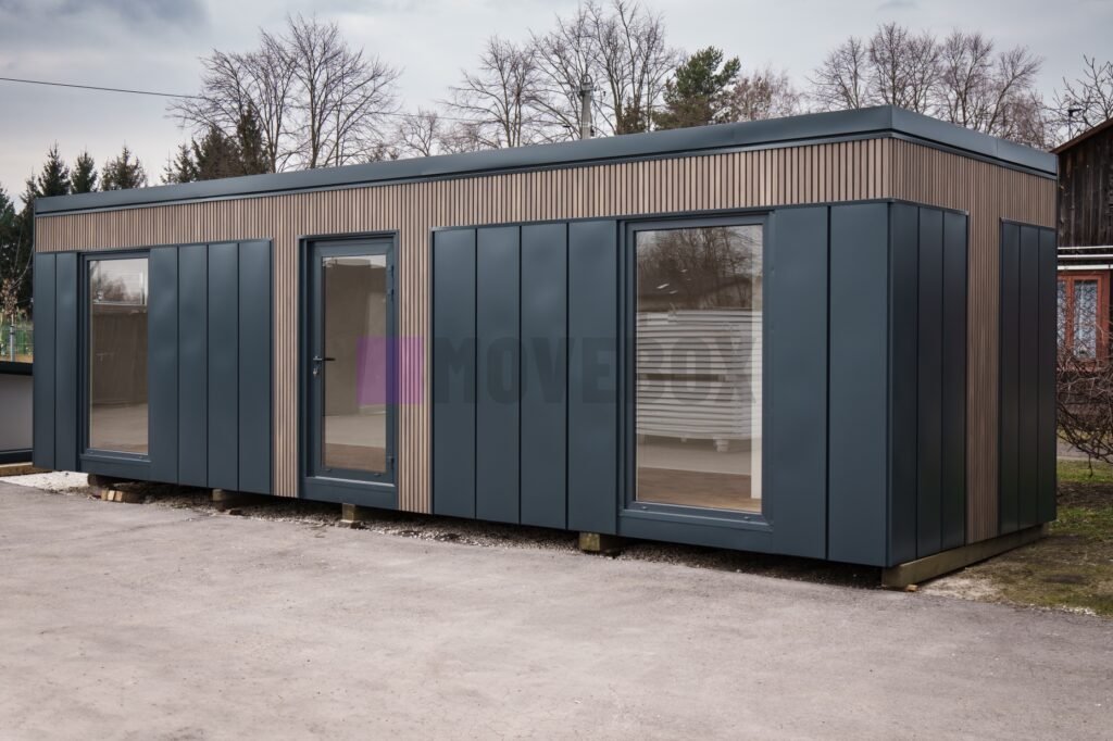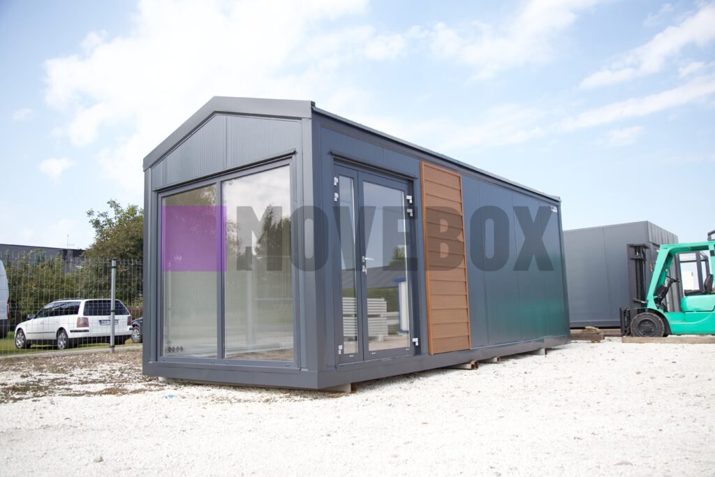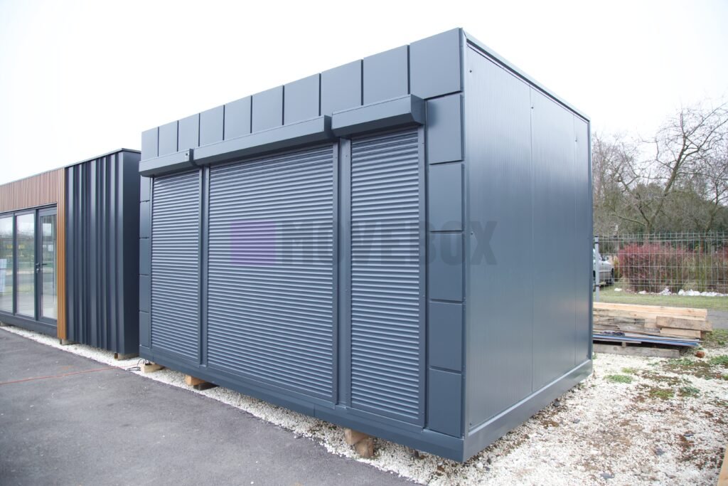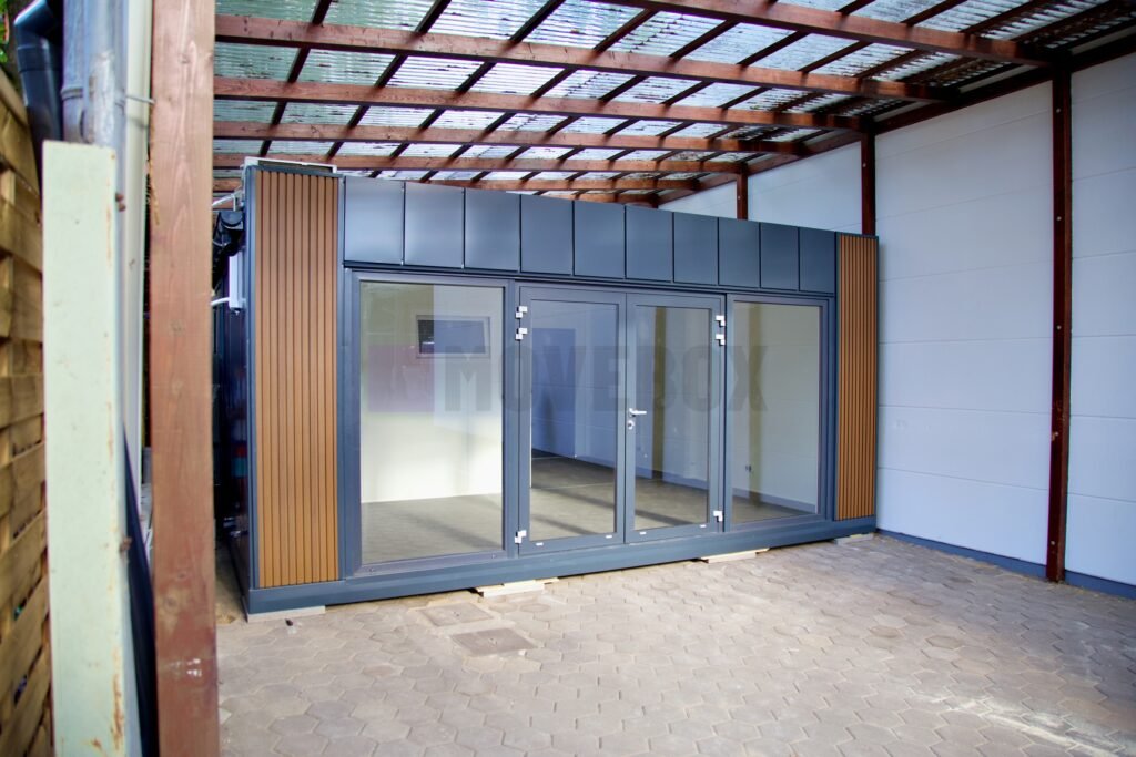 Neuer MOVEBOX-Container mit den Maßen 8,00 m x 3,00 m mit Rahmen Typ B (Pultdach, Transportgriffe, nicht stapelbar, keine Dachterrasse möglich).